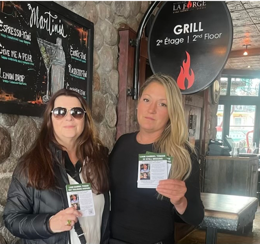 La fin de semaine du 12 avril , des membres de la famille Toman et des amis sont retournés à Mont-Tremblant pour distribuer des dépliants et continuer à sensibiliser le public à la disparition de Liam. Le village de Mont-Tremblant et ses habitants nous ont accueillis à bras ouverts. Ils nous ont témoigné leur solidarité et leur soutien dès notre arrivée. Ce soutien communautaire a été d'une grande aide pour la famille, les amis et les proches de Liam.